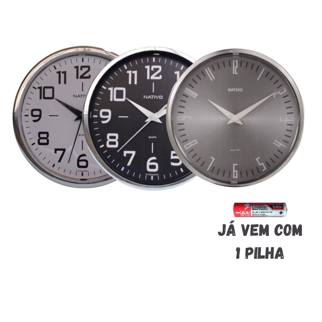Relógio De Parede Redondo Metalizado Cozinha Sala 30cm