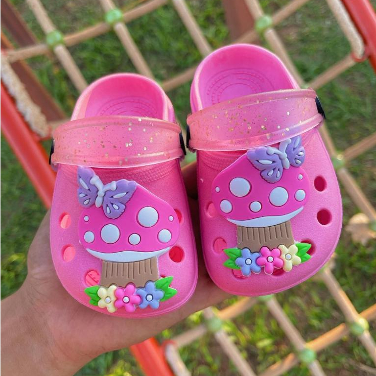 Sandália Babuche Infantil Menina Rosa/Gliter Cogumelo - Estiloso e confortável