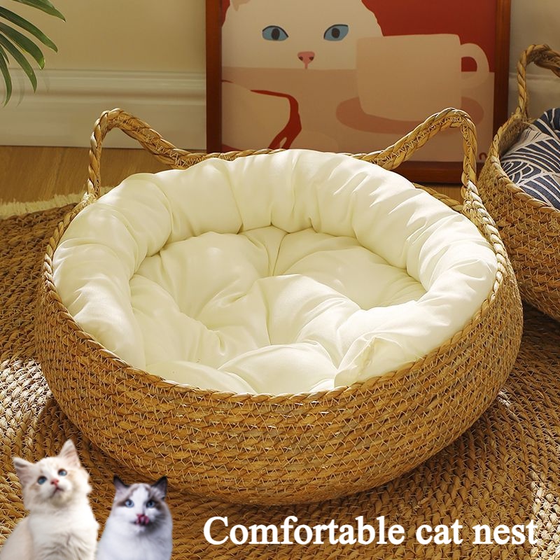 【Muhsinpet】Ninhos de gato tecido de rattan destacável e lavável Cama para gato e toca para cachorro