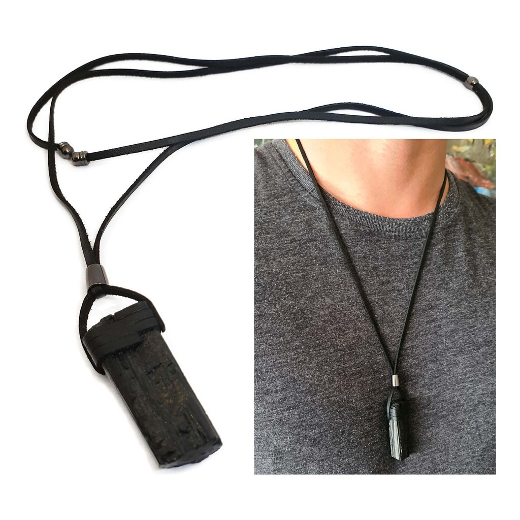 Colar Masculino com Turmalina Negra Natural, Estilo e Proteção contra Más Energias, Escudo Energético