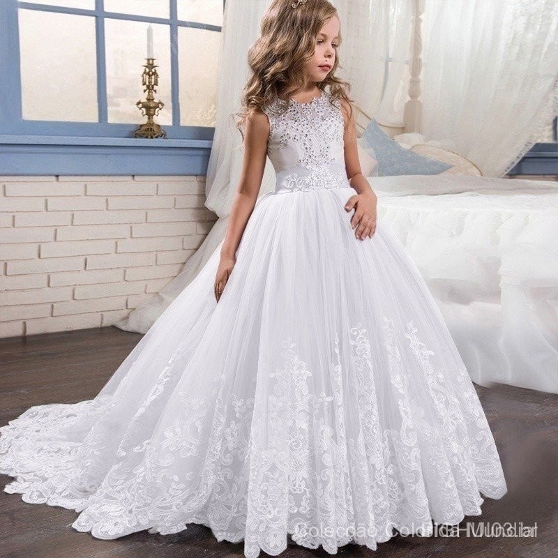 Vestido De Dama De Honra Branca Meninas Princesa Longa Para Festa De Casamento 3 Anos 4 Ano 5 6 7 8 9 11 12 13 14