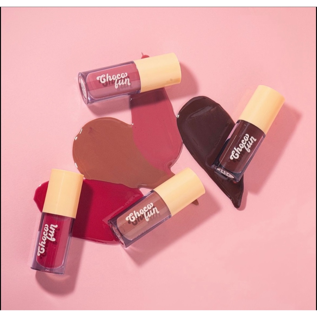 CHOCO FUN TINT CREAM LIP TINT BATOM BRILHO LABIAL AU LAIT GANACHE FLAN FONDUE CAMAFEU COOKIE SENSAÇÃO BROWNIE FENZZA
