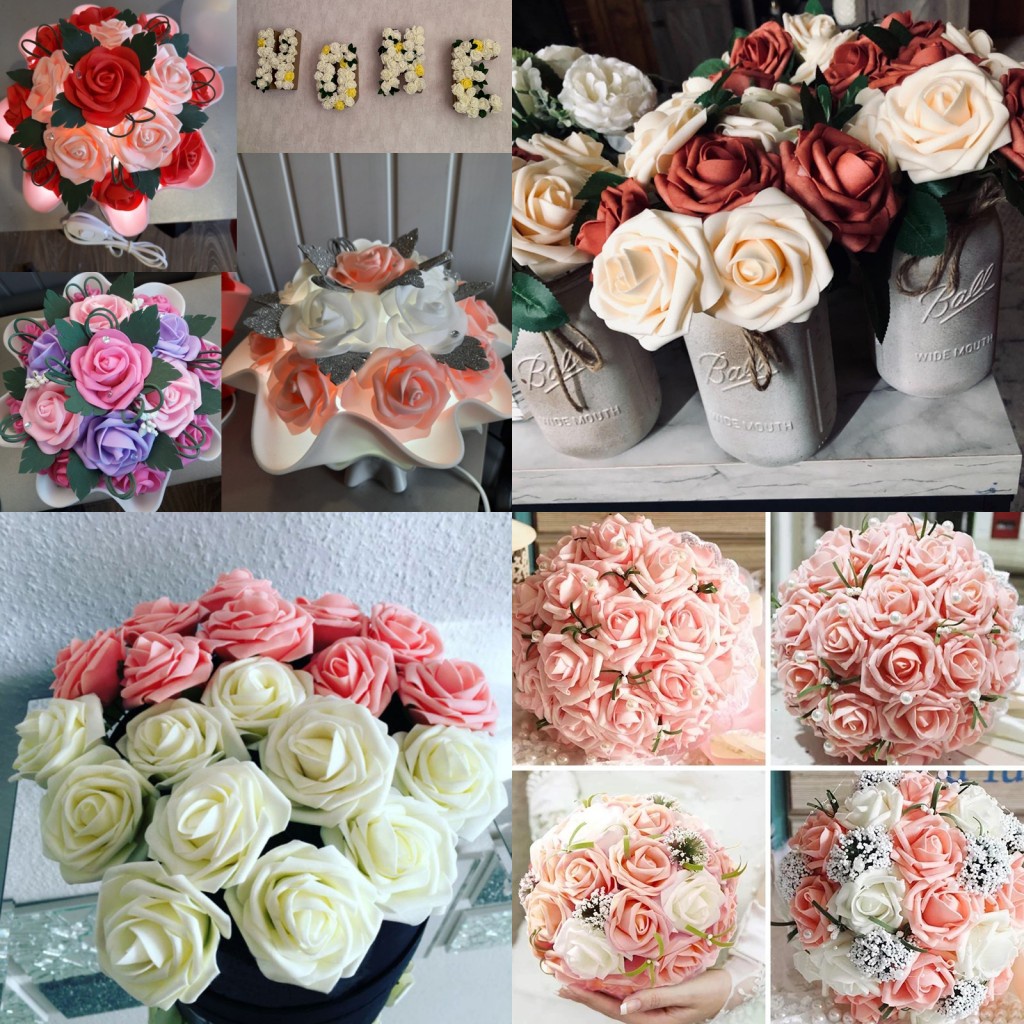50Pcs 8cm Rosa 14 Cores Flor Artificial De Alta Qualidade Espuma Bolo Topper Casamento Nupcial Buquê De Parede Backg