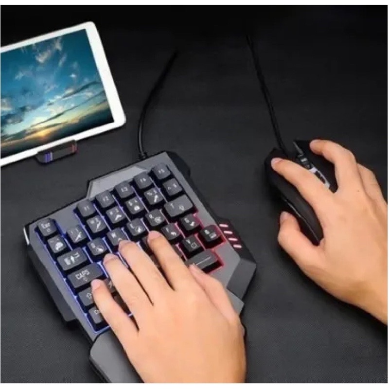 Kit Teclado de Uma Mão Rgb Led Para Celular Com Cabo Otg Micro Usb, Tipo CGamer Jogos