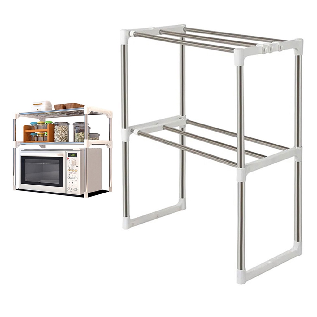 Prateleira Microondas Suporte Inox 2 Andares Ajustavel Gancho Rack Pia Bancada Cozinha Organizaçao Multifuncional Resistente Armazenamento