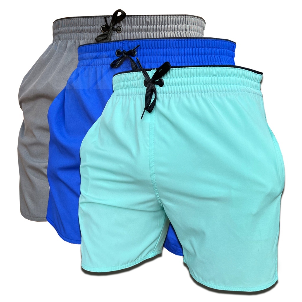 Kit 3 Short de Elastano Dry fit Bermuda de Praia Piscina e Academia