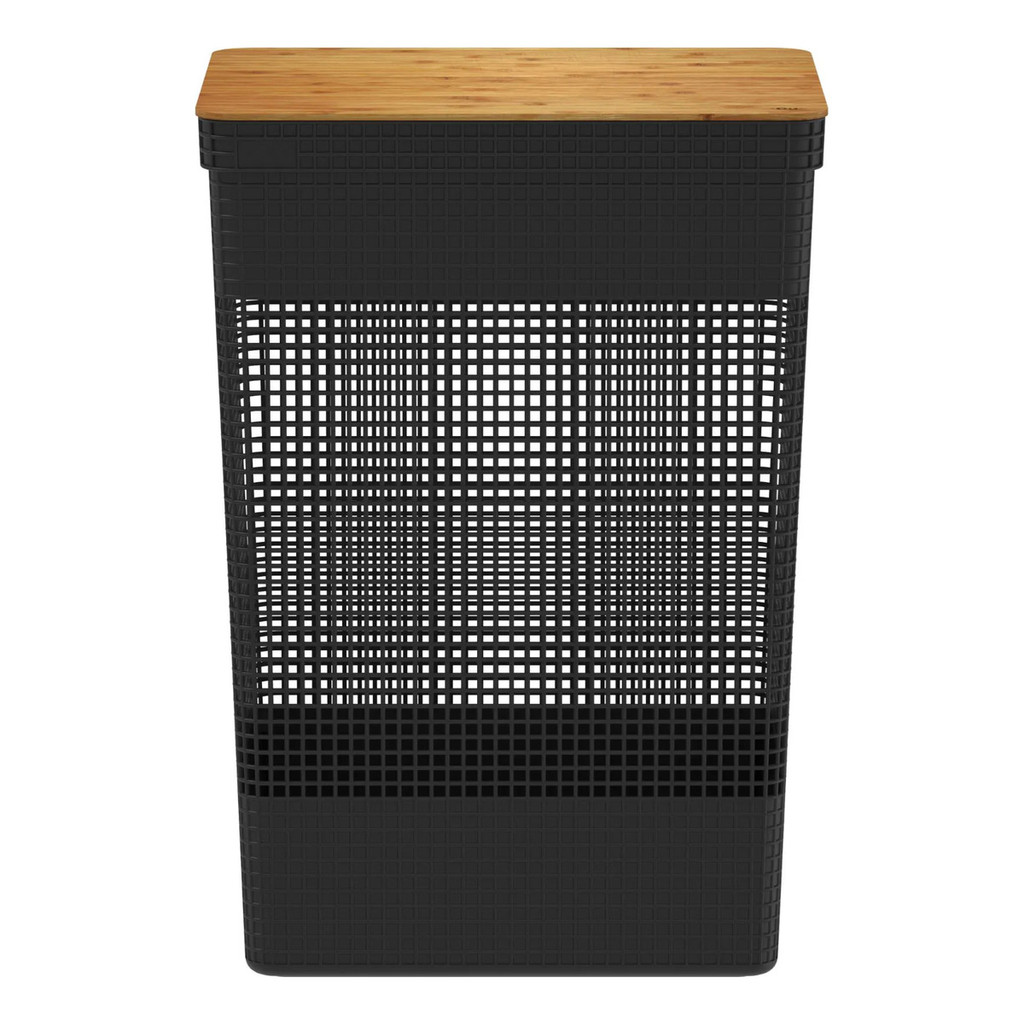 Cesto de Roupas Grid Com Tampa De Bambu 49l Preto - OU