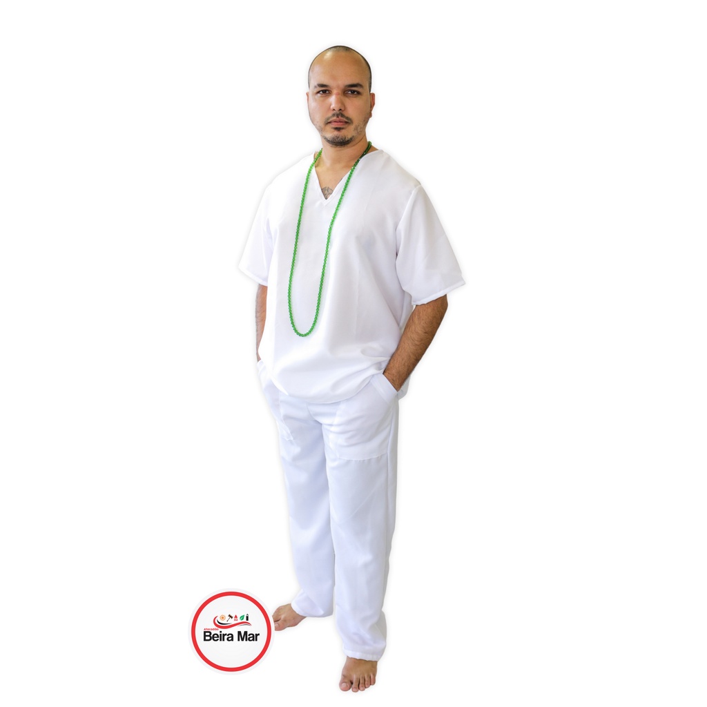 Roupa De Ração Masculina Umbanda Candomblé Branca e Preta 2 peças Calça e Bata