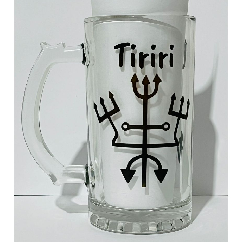 CANECA DE CHOPP CERVEJA E BEBIDAS EXÚ TIRIRI VIDRO 475ML UMBANDA KIMBANDA E CANDOMBLÉ