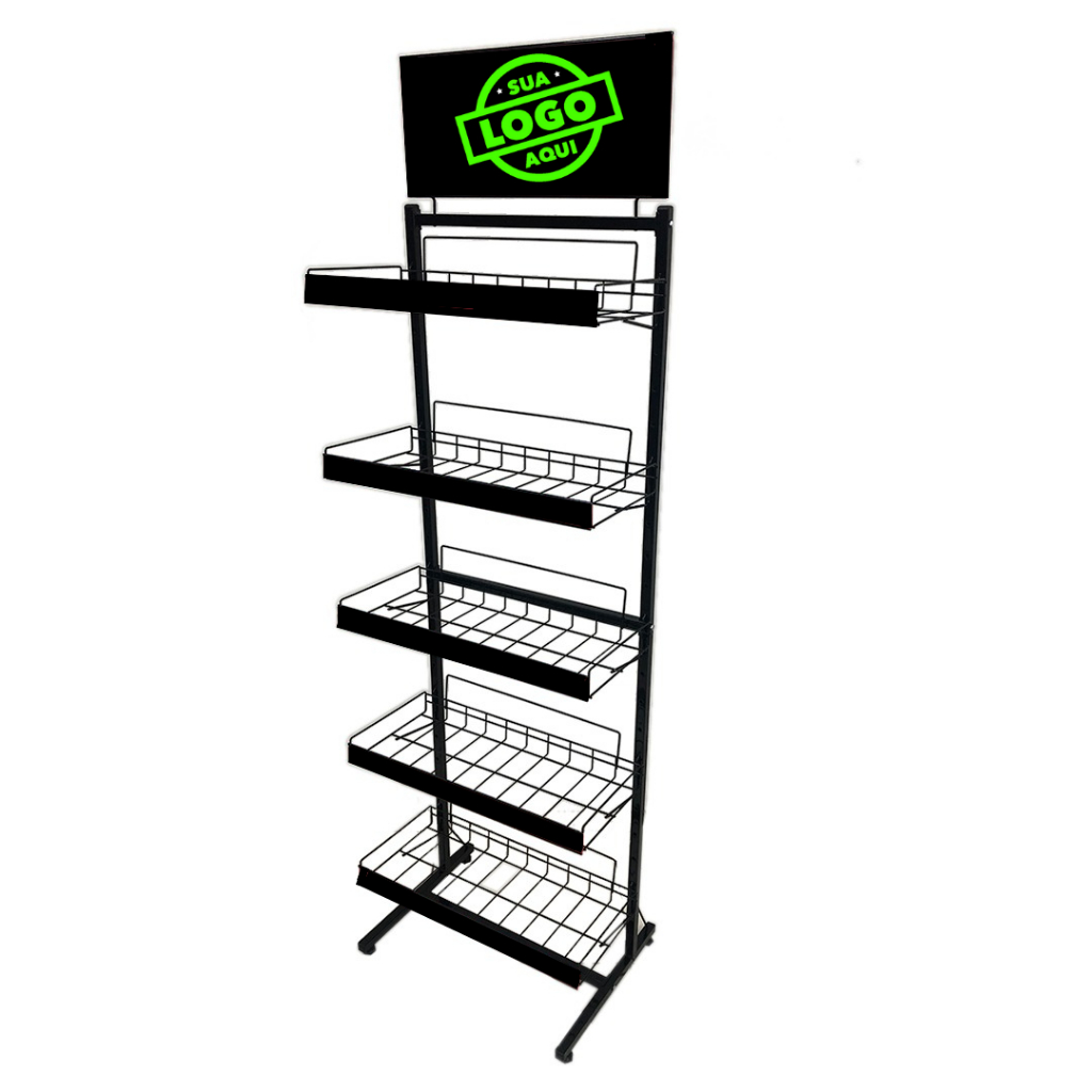 Expositor Display Para Salgadinhos Bebidas e Outros Com Cesto Aramado Mercado Mercearia Desmontável 5 Andares