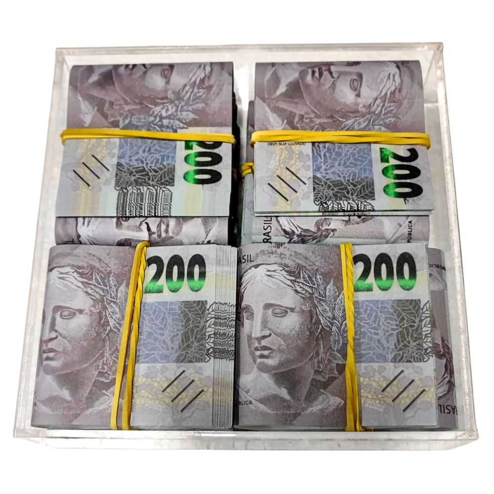 Caixa do Milhão The money Box Nota 200 Reais Cédulas Dinheiro Quadro Plaque Sem Valor Acrílico Presente Decorativo