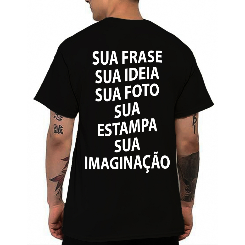 Camiseta Personalizada sua ideia sua Logo sua marca empresa Tecido 100% Algodão Estampa Grande Frente ou Costa