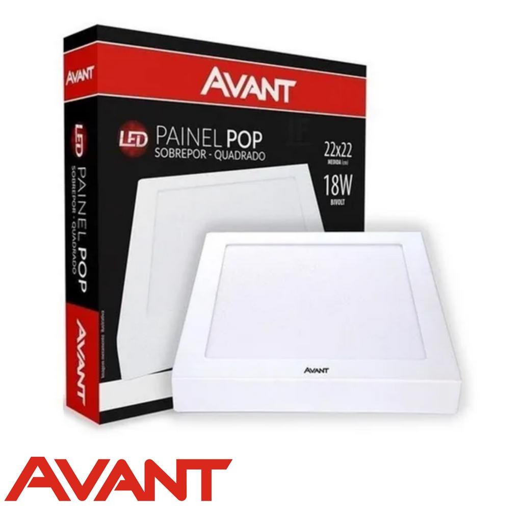 Luminária Painel Plafon Led 18W 22x22 Quadrado Redondo Embutir / Sobrepor 6500k / 3000K Avant 01 ANO DE GARÂNTIA