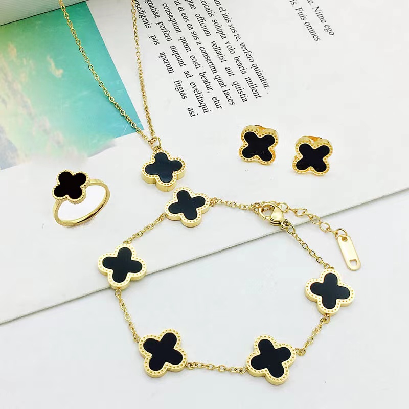 Conjunto Ouro Aço Inoxidável Colar Quatro Folhas De Brincos Pulseira Fritillaria Jóias Incolores Para Mulheres