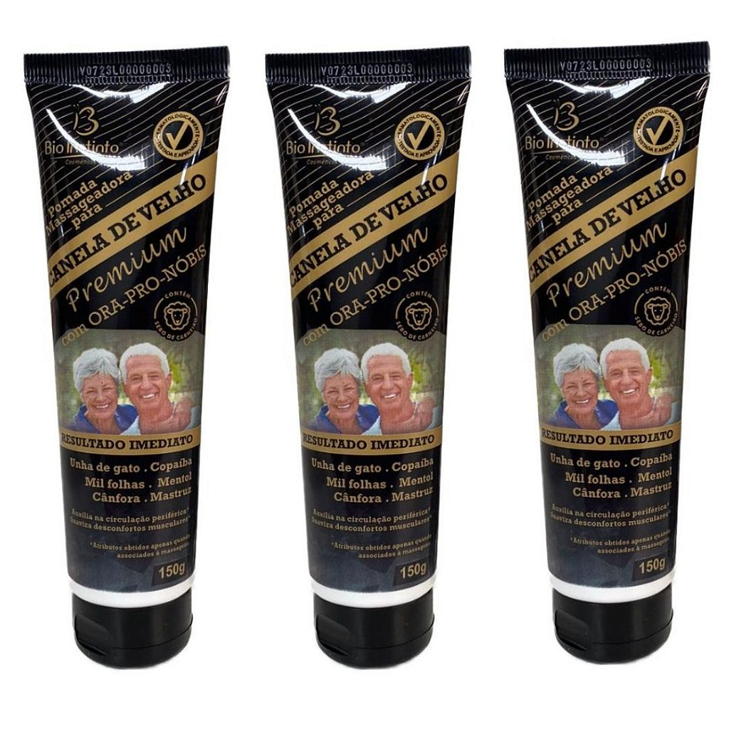 Kit Com 3 Pomada Massageadora Canela de Velho Premium 150g Bio Instinto