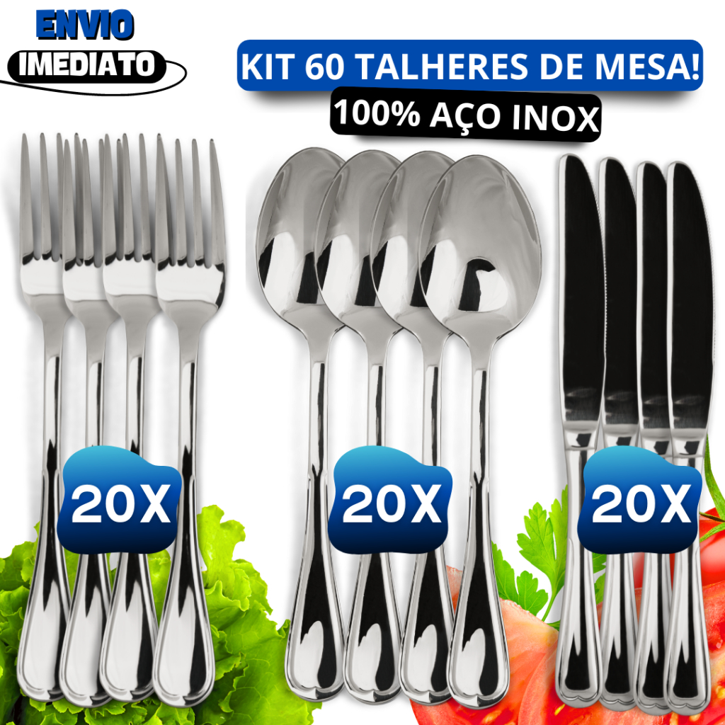Kit 60 Talheres Garfos Facas em Aço Inox 100% Premium Resistentes