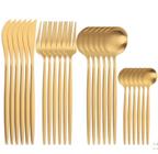 24 Peças Jogo de Talheres Faqueiro De Aço Inoxidável Premium Dourado Utensílios De Cozinha TINNY YOU