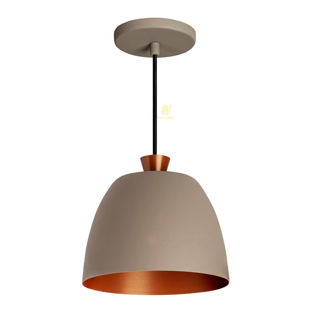 Luminária Pendente Oval de Mesa Sala Cozinha Jantar Alumínio Dublin Bege Fendi Nude com Cobre Iluminação