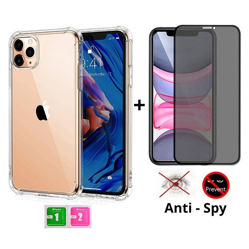 KIt Capa anti-impacto + Pelicula 3D Privacidade Para Todos iPhones 15 14 13 12 11 15 Pro Max X XR 7 Plus 7 8 SE 2020 6 6s 6Plus