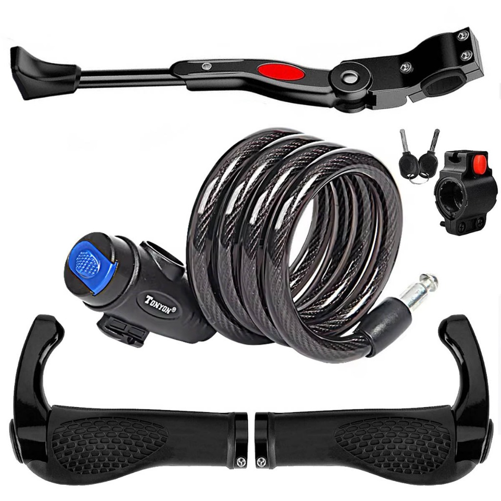 Kit de Bike 4 itens Cadeado + Pezinho Descanso Lateral + Par de Manoplas + Selim Banco Vazado em Gel