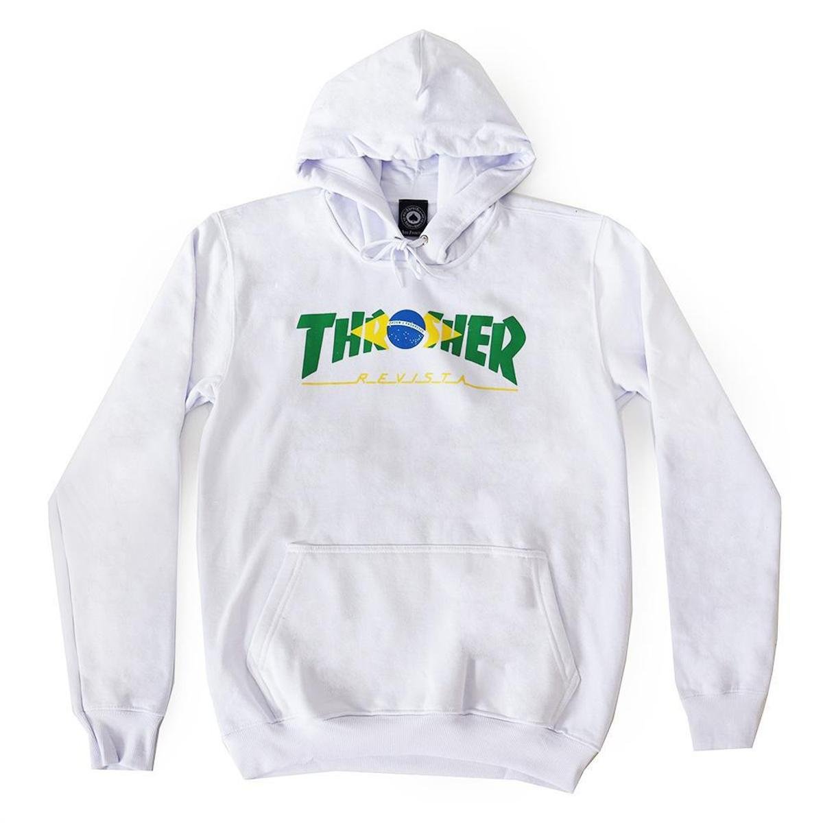 Moletom Thrasher Magazine Canguru Brazil Revista - Branco