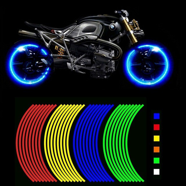 16Pcs Decalque De Rodas Lotes De Listras Refletoras Tiras De Fita Adesiva De Motocicleta Carro De Aro