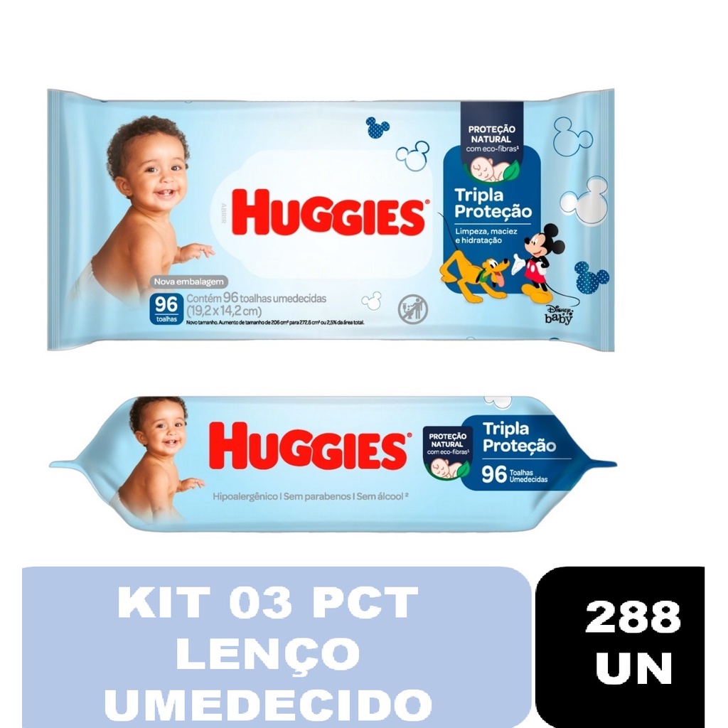 Kit 3 Toalhas Umedecidas Huggies Tripla Proteção 96 folhas (03 pacotes) - 288 unidades