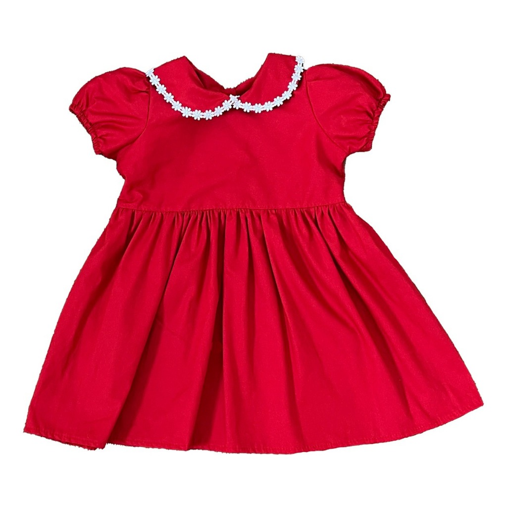 Vestido Infantil Tiara Bebê Menina Vermelho Natal 100% Algodão Brenda - Tam P ao 3 anos