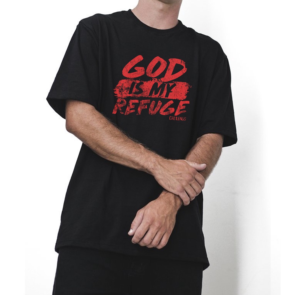 Camiseta oversized street wear god iis my refuge camisa crista preta algodão gospel jesus cristo
