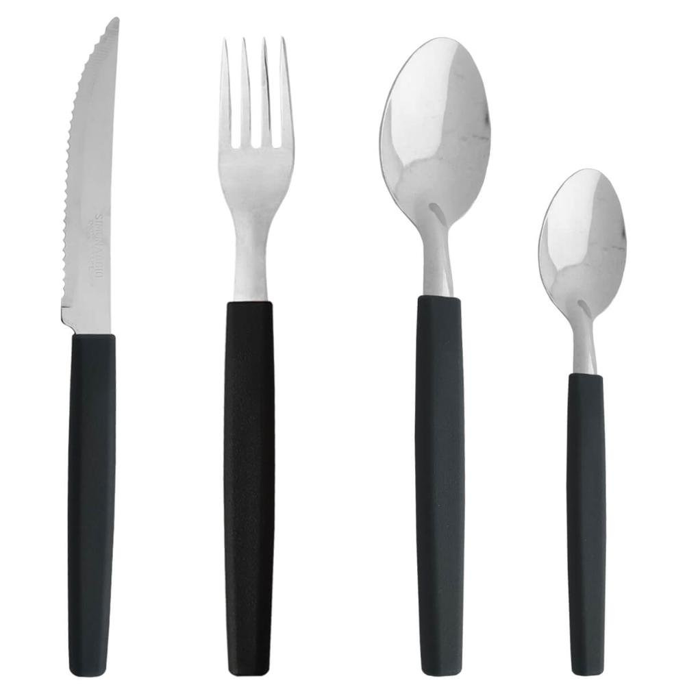 Jogo de Talheres De Aço Inoxidável E Cabo Preto Conjunto De Talheres 24 Peças Linha Belize Simonaggio