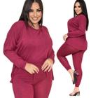 Conjunto Plus Size Calça Crepe de Malha com Blusa Canelada | Veste do 46 ao 54