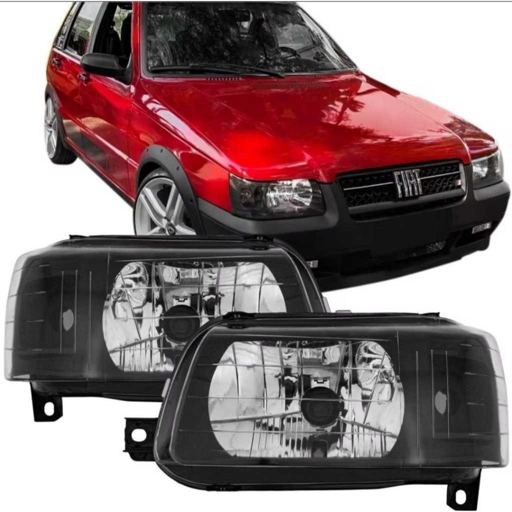 Par de Farol Fiat Uno Fiorino Mascara Negra 2004 2005 2006 2007 2008 2009 2010 2011 2012 2013 Fume