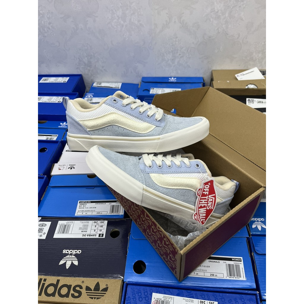 Vans Knu Skool Trendy Casual Vintage Bread Shoes desgaste resistente antiderrapante sneakers baixa altura homens mulheres mesmo estilo Azul Branco