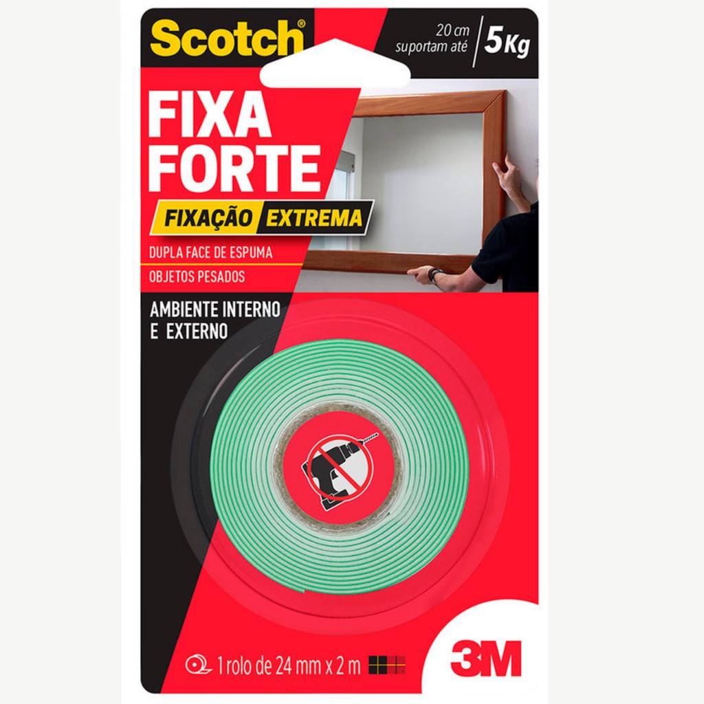 Fita Dupla Face Fixa Forte 24mm X 2m Scotch 3M 5kg Interno e Externo