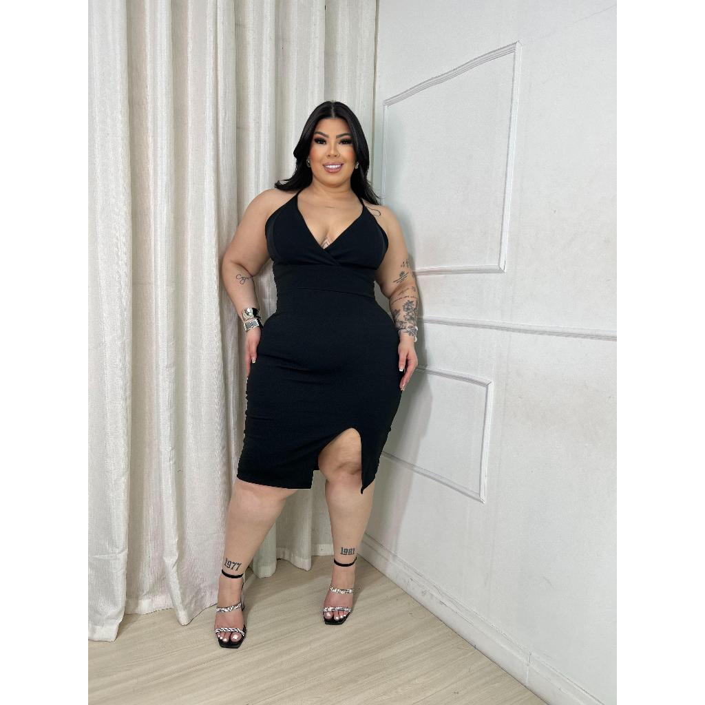 Vestido Plus Size Feminino Rodado Decote Em V Alça Regulável Tecido Crepe Duna