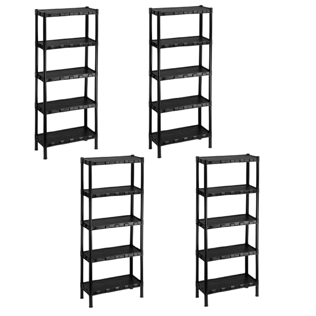 Kit 4 Estante Plástica Modular Preta 5 Prateleiras Livros Ferramentas