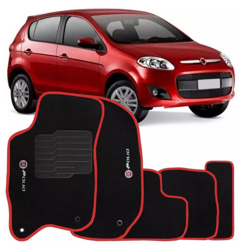 Jogo Tapete Automotivo Carpete Palio Novo Sporting 2012 2013 2014 2015 2016 2017 2018 2019 2020 2021 Logo Bordado - Acabamento em Vermelho