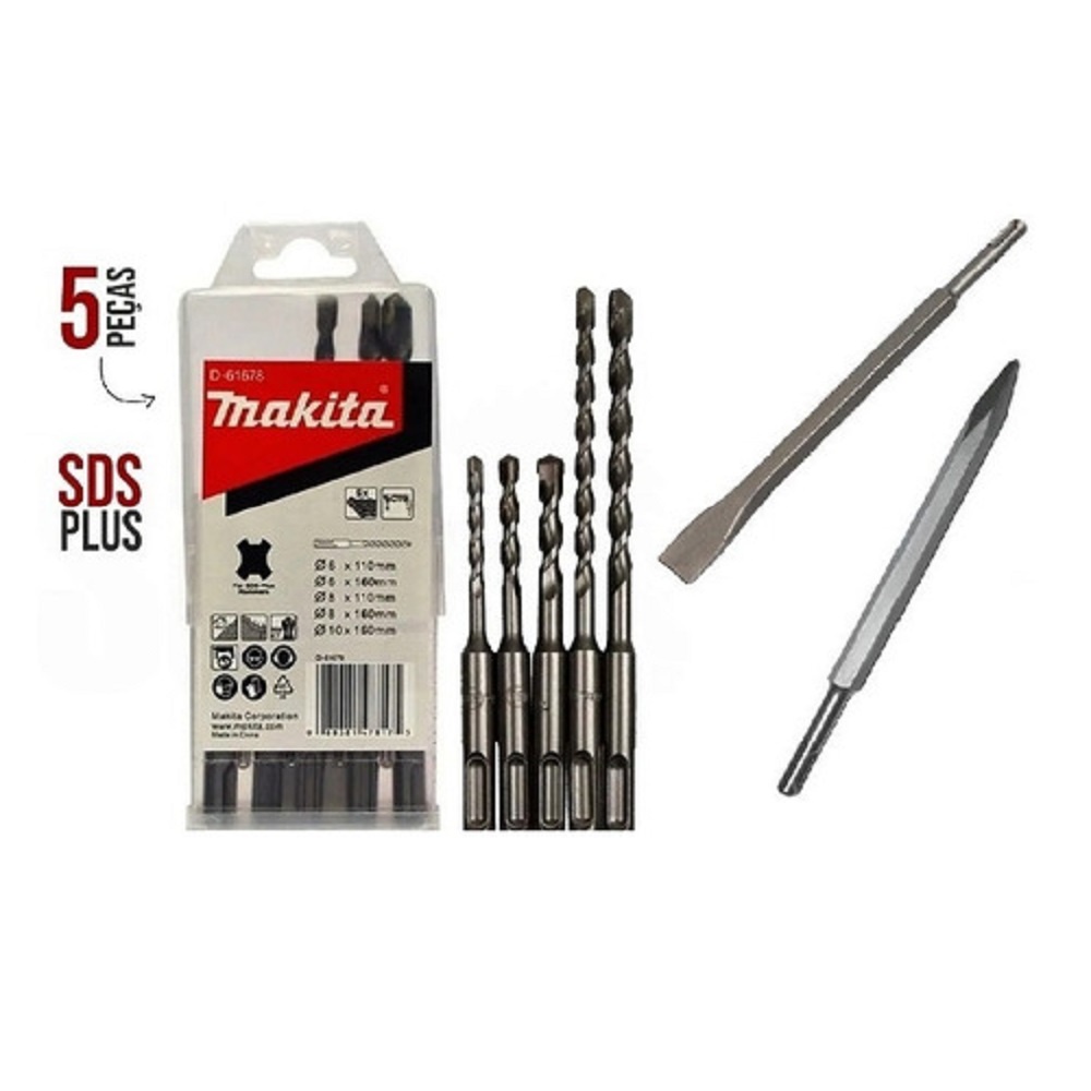 Kit talhadeira + ponteiro + jogo de brocas sds plus makita