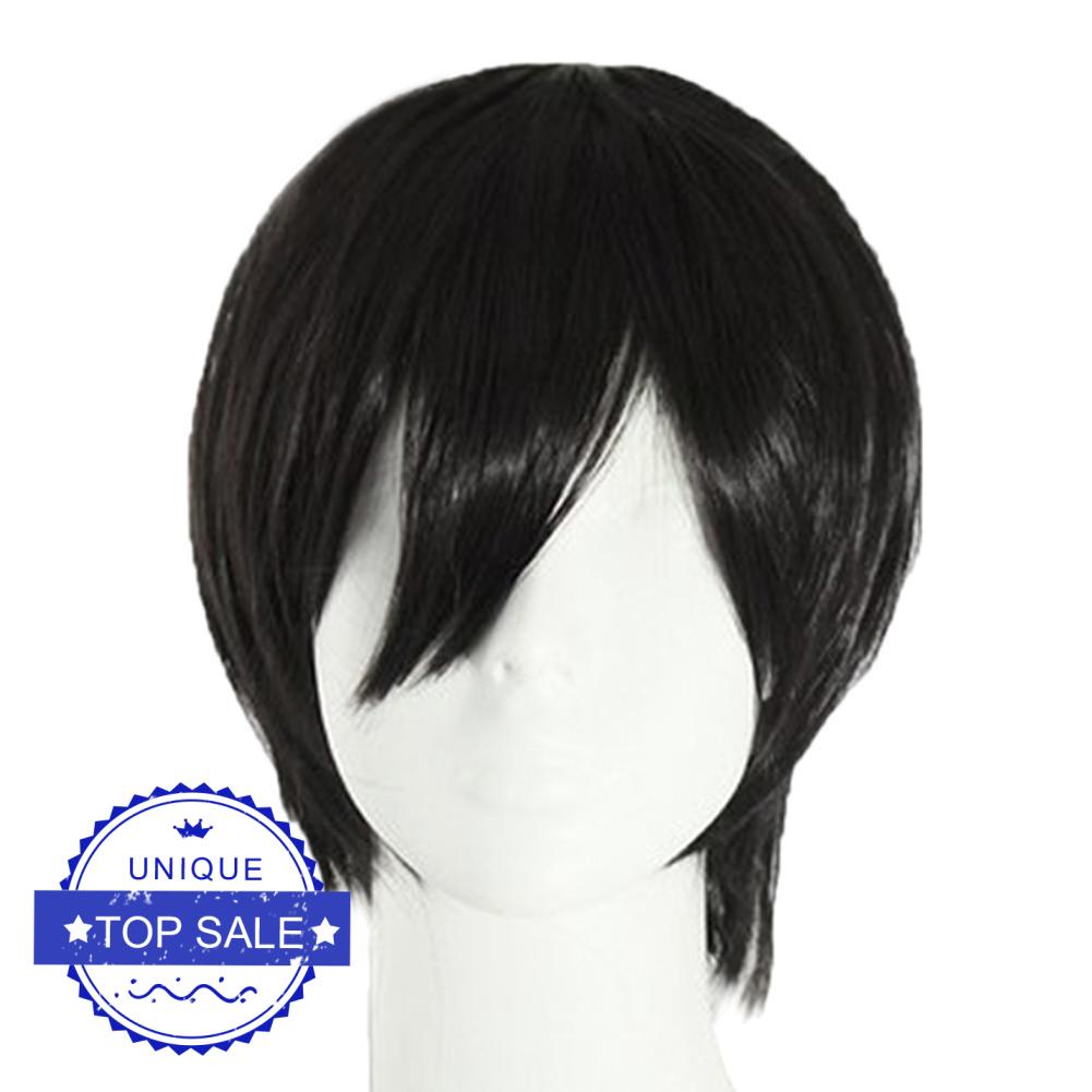Peruca De Cabelo Masculina Preta Anime Cosplay Ne W6V1