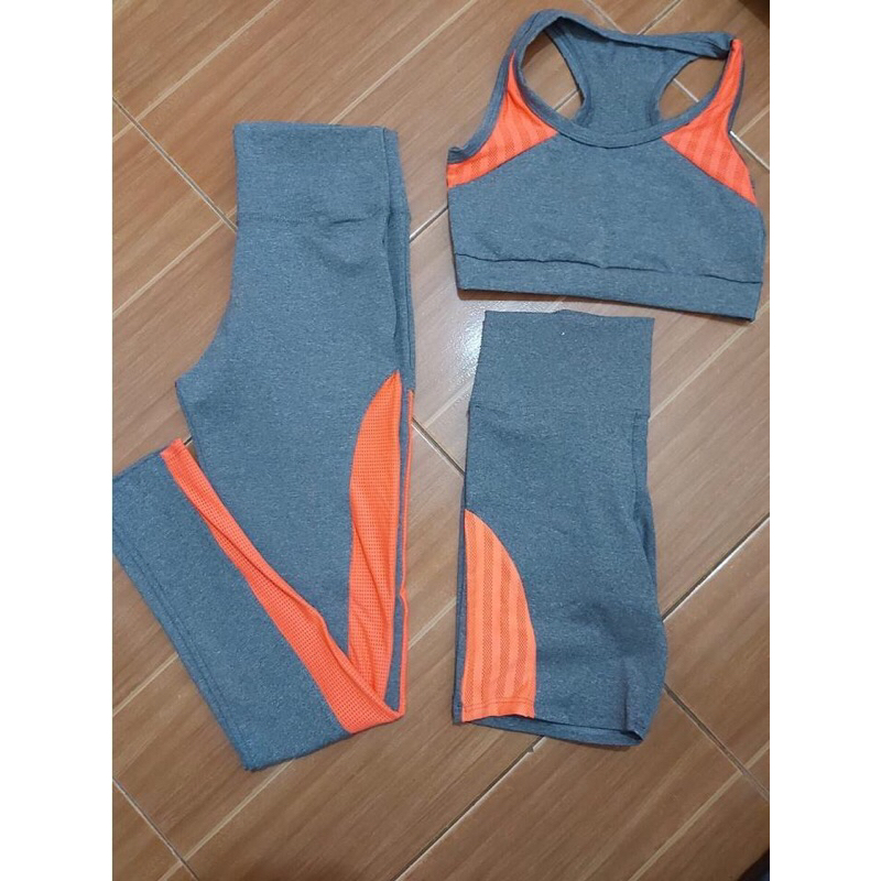 conjunto de 3 peças shorts top e calça pra academia
