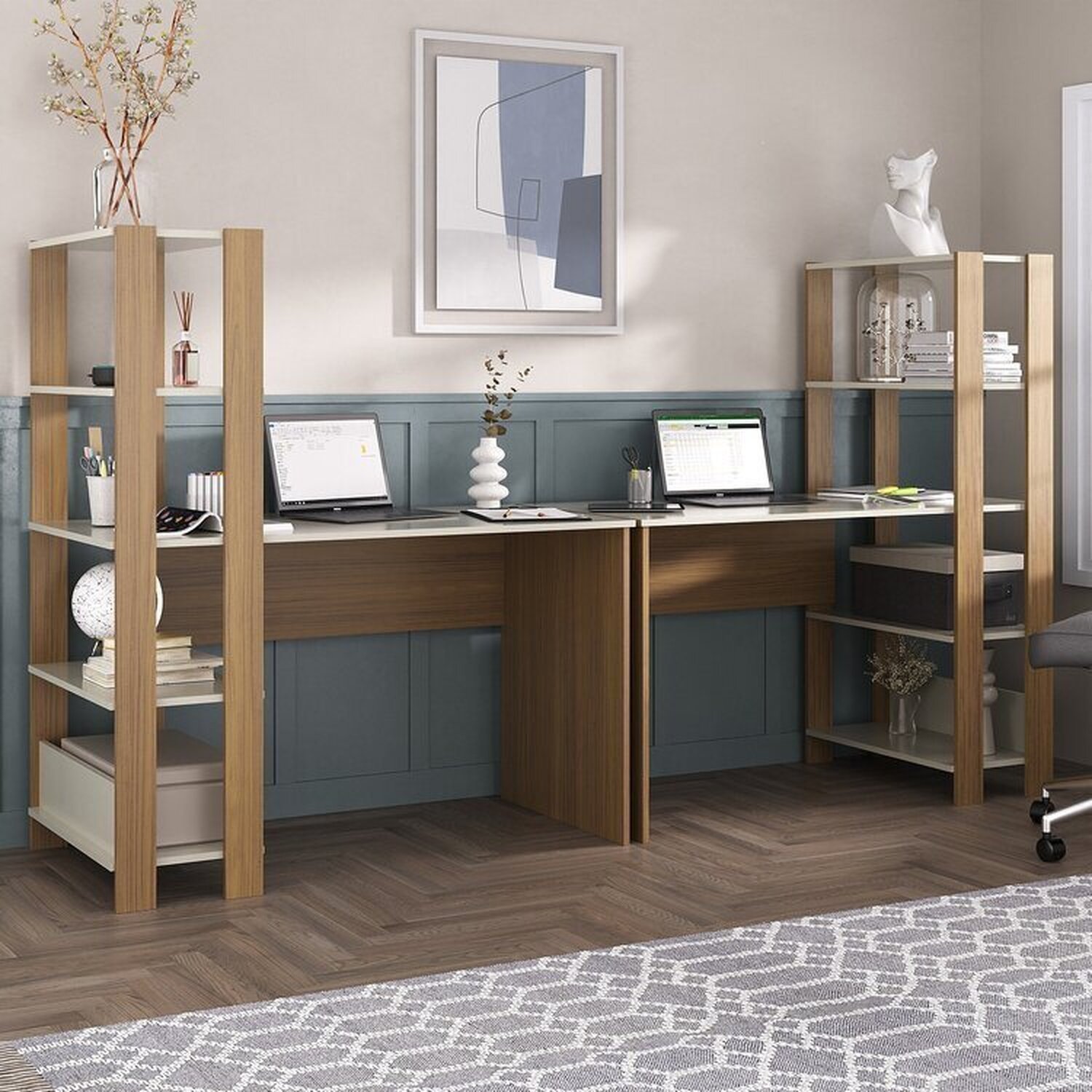 Kit 2 Escrivaninhas com Estante 4 Prateleiras 120cm Match