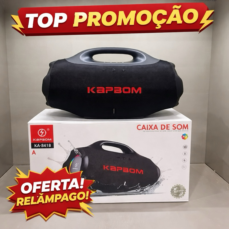 Caixa de Som Boombox KAPBOM 300W Bluetooth RGB Portátil Grave Potente USB SD Bateria Longa 60cm 8kg