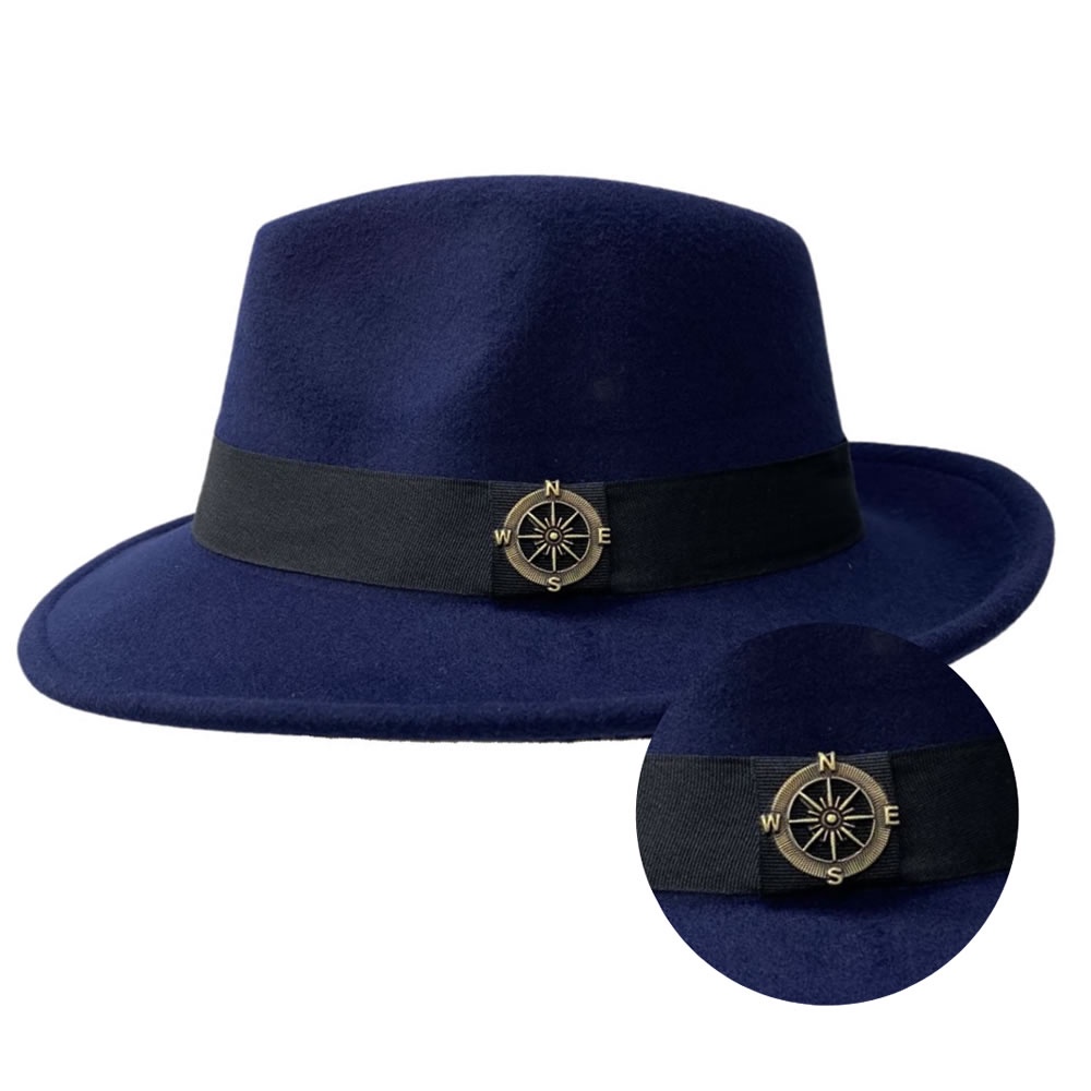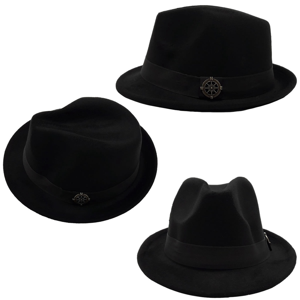 Chapeu Gangster Fedora Feltro Ajustavel Aba 5,5 Cm Pingente