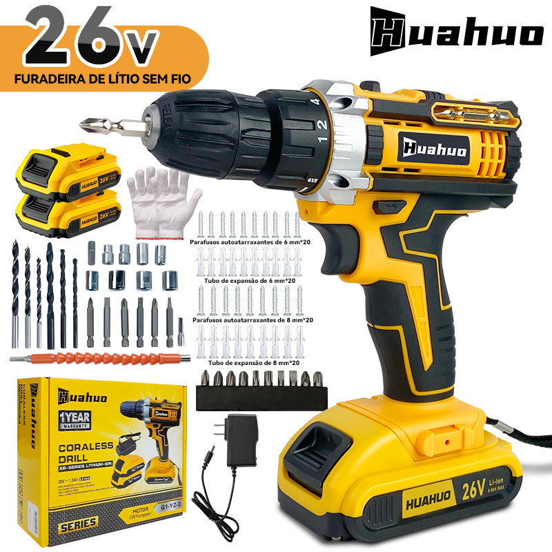 Huahuo Parafusadeira E Furadeira Eletrica - 2 Bateria 26v - Com Maleta