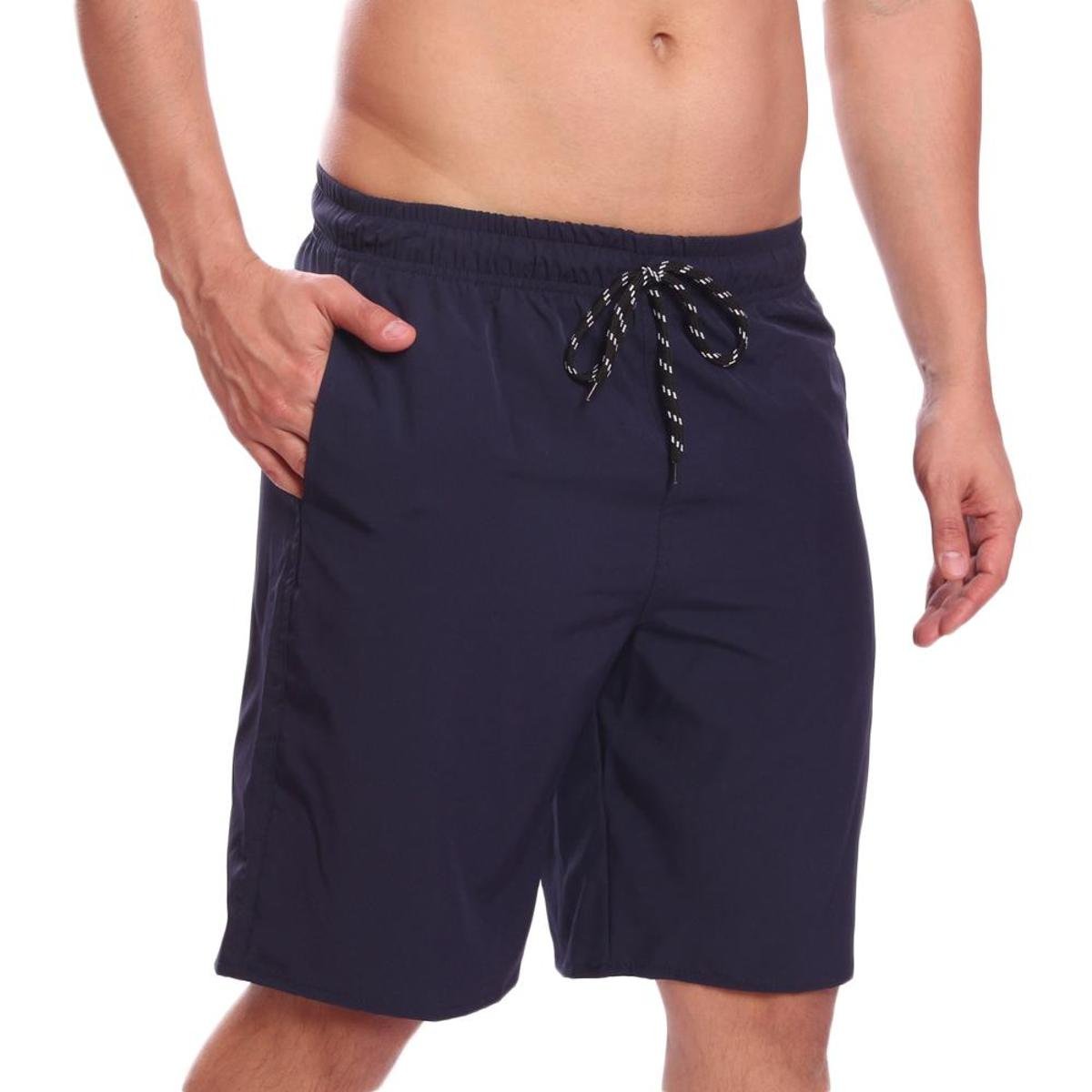 Short Masculino Bueno Liso Básico Leve Bermuda Masculina com Elástico e Cordão Ajustável na Cintura Bolsos Laterais Secagem Rápida Resistente Ideal Para Corrida Caminhada Bike Academia Treino ou Uso Casual Festa Lazer Piscina Praia Viagem Verão Azul Royal