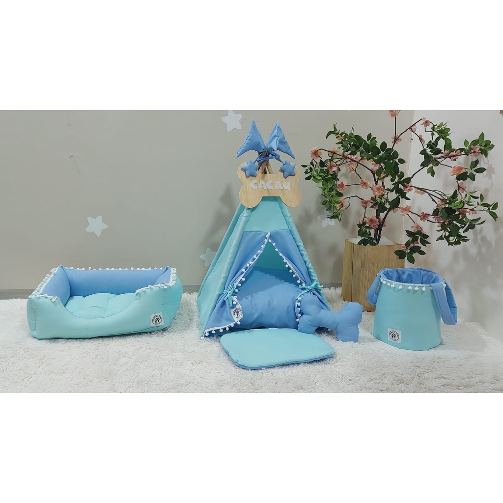 Kit Cabana Pet Cachorro Gato Toca Indio Azul Com Colchão P