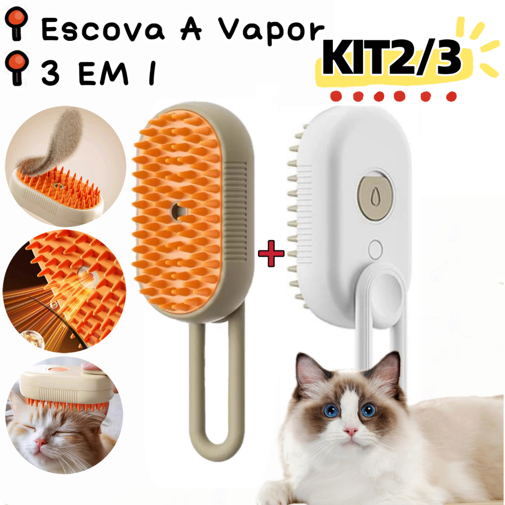 Escova A Vapor Para Cães e Gatos 3 Em 1 Escova Elétrica De Pelos Massagem Animais De Estimação