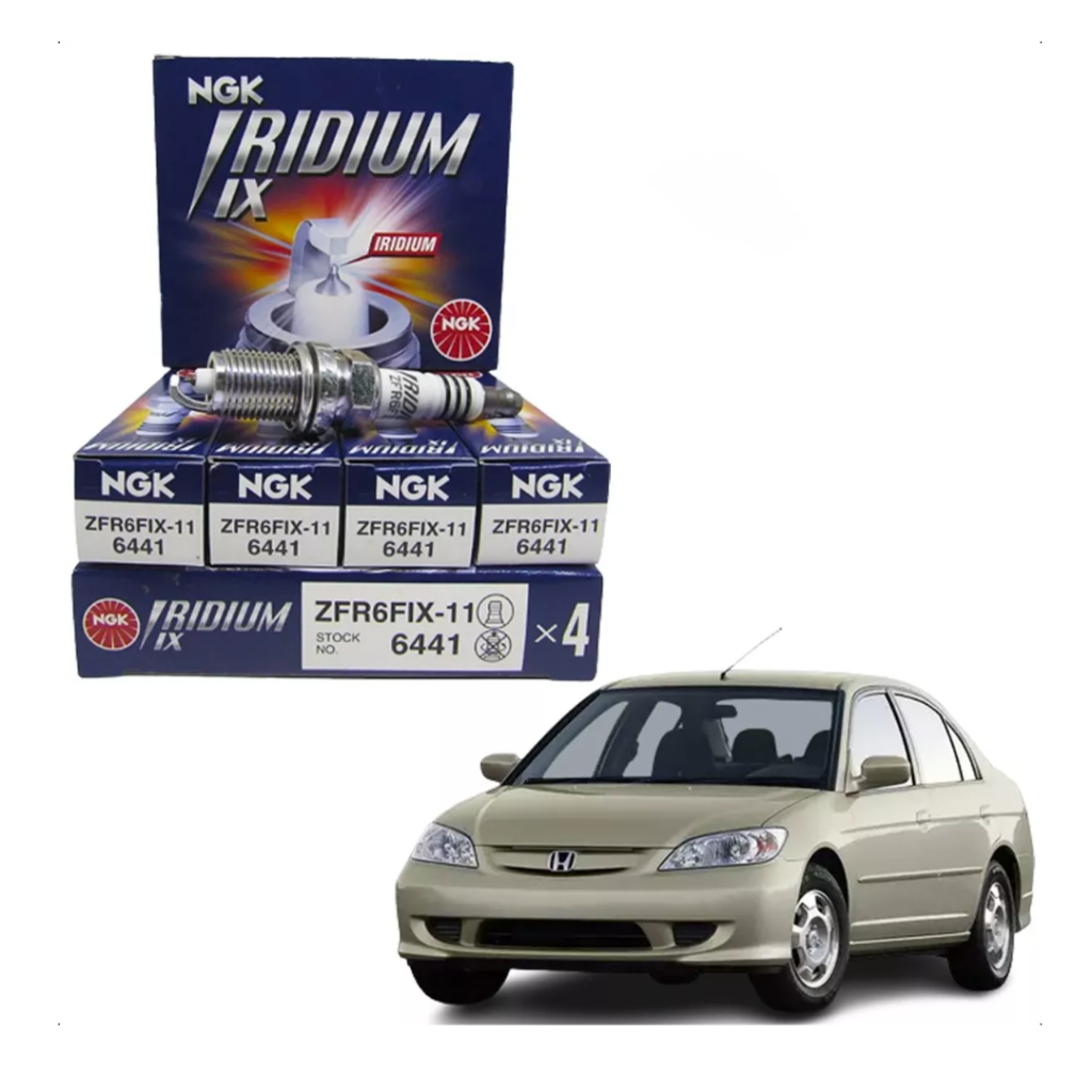 Jogo Vela Ignição Ngk Iridium Honda Civic 1.7 16v 2001 2002 2003 2004 2005 2006 Zfr6fix11