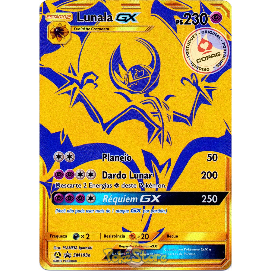 Carta Pokemon Lunala GX Dourada Full Art Português Original Copag SM103a Promo
