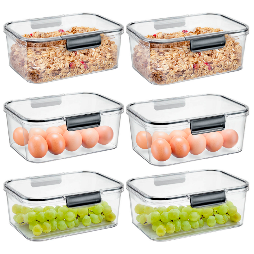 Kit 6 Peças Organizador Hermético Retangular Porta Mantimentos 6 POTES 2,3L